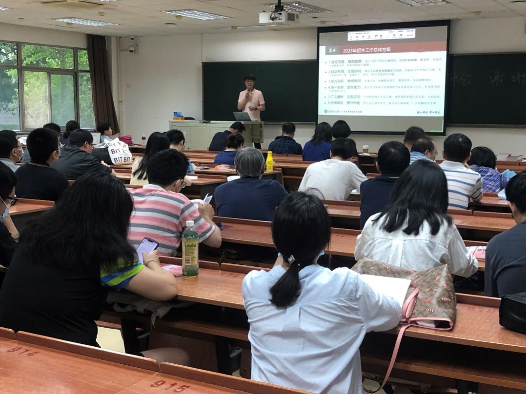 奚英伦介绍了学院2023年招生宣传方案和具体工作安排,明确了本年度青海、湖北两省的招生目标。会上要求全体招生宣传人员从开拓宣传新模式、扩展宣传新途径和落实宣传新要求三个方面构建全方位立体化宣传矩阵,要充分利用北理工的宣传亮点,加强目标生源的宣传覆盖,全体领航人要提高站位、凝心聚力、协同攻坚,争取生源质量再上台阶。
